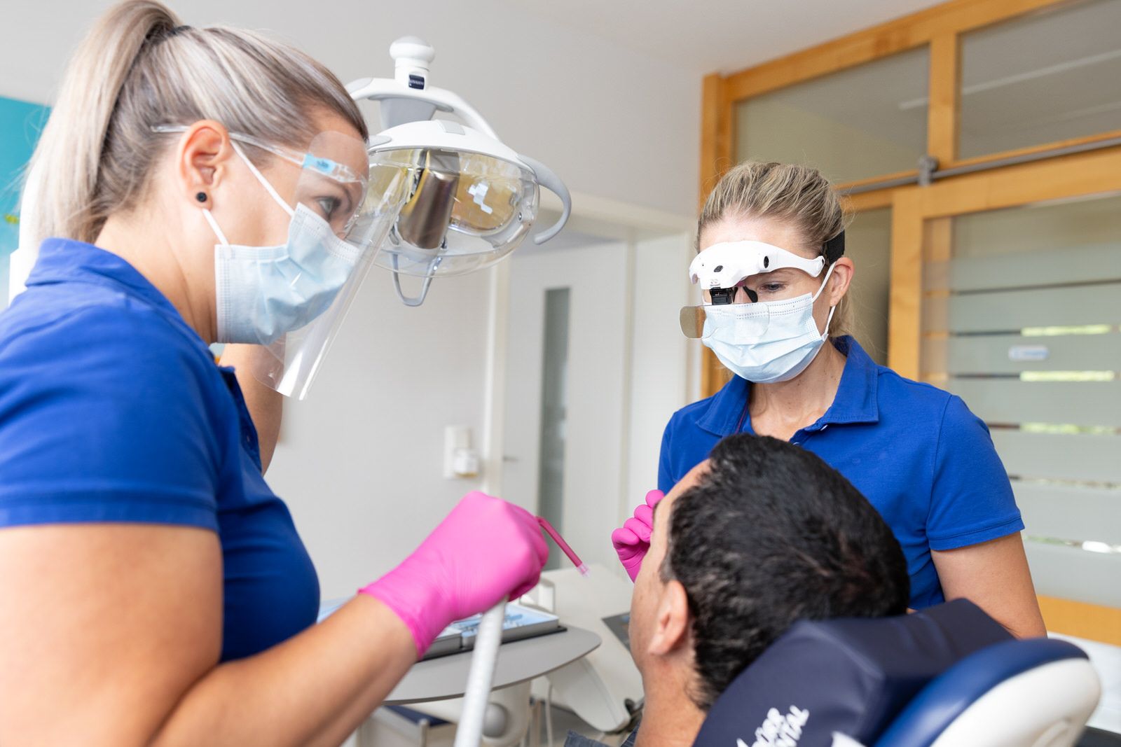 Die Versorgung mit Implantaten erfolgt in der Regel in unserer Praxis. Bei sehr komplexen Fällen arbeiten wir eng mit chirurgischen Fachpraxen zusammen. Die prothetische Versorgung erfolgt dann immer bei uns – mit Sorgfalt, Erfahrung und einem guten Blick für das, was medizinisch sinnvoll und optisch überzeugend ist.