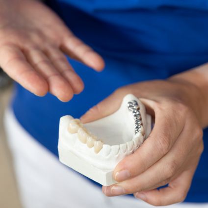 Die Versorgung mit Implantaten erfolgt in der Regel in unserer Praxis. Bei sehr komplexen Fällen arbeiten wir eng mit chirurgischen Fachpraxen zusammen. Die prothetische Versorgung erfolgt dann immer bei uns – mit Sorgfalt, Erfahrung und einem guten Blick für das, was medizinisch sinnvoll und optisch überzeugend ist.